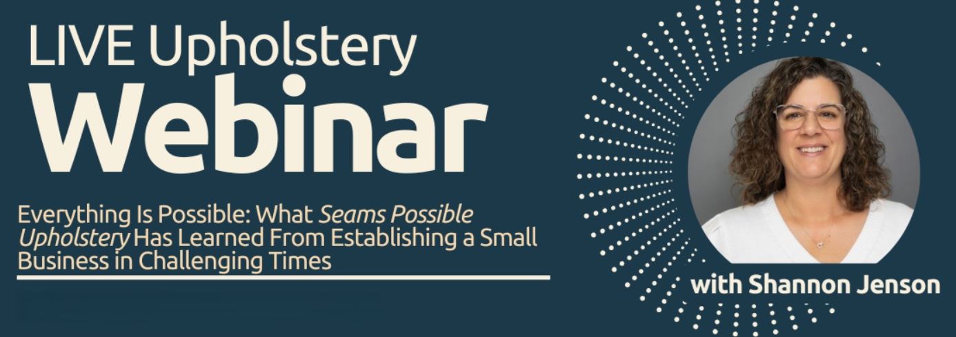 Shannon Jensen owns Seams Possible Upholstery with her husband Shawn. Shawn and their team do the upholstery and Shannon runs the business. She had a long career in higher education as an academic advisor before the pandemic pulled her in a different direction. Shannon and Shawn opened their workroom in 2022 and have been learning and growing ever since.